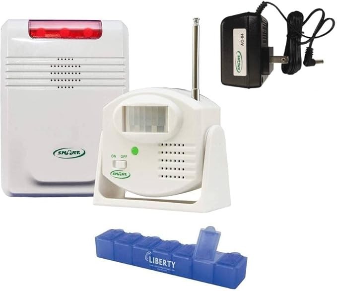 Smart Caregiver Economy Elderly Monitoring System – Fall Prevention, Wireless Motion Sensor, Wireless Alarm, AC Adapter, Liberty Pill Organizer for Dementia and Alzheimer's Care.